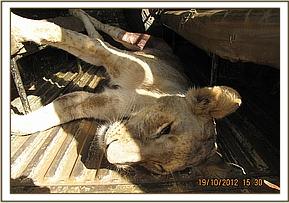 Deep in the field at the Kaluku headquarters a day can hold many dramatic possibilities. At first light the land comes alive and the day begins in a flurry of activity with the anti-poaching ground teams heading out on their daily patrols, coordinated over the buzzing radio from the HQ, whilst the aerial unit takes to the skies, supporting the Kenyan Wildlife Service and their security teams in protecting the greater Tsavo Conservation Area. A report is soon being called over the radio that a sub-adult lioness has mauled a night guard and another member of staff at a camp along the Athi River only a few kilometres away from the Trust's field HQ. After communications are passed, the KWS are despatched to the camp where the lion had been terrorising the staff, who had taken to the roof for safety, waiting for help to come. This lion was clearly disturbed and had visible wounds on its front leg, which could have been causing its extremely aggressive behaviour. Another intriguing explanation could be from a scene that was witnessed the day before from our Field Manager's house, where a mother and her sub-adult cub were drinking from the river near to the camp and were suddenly attacked by a large crocodile. Within seconds and under the cover of great splashes of water the juvenile lion has disappeared into the river with the crocodile. The mother lion had immediately followed her cub into the water in desperation, soon clambering back out onto the shore before diving in again in an attempt to find her adolescent child. All night the mother called frantically through the darkness in search of the missing lion until her calls faded and she followed the river away from the camp. Perhaps the sub-adult lion had survived but with serious injuries from the crocodile, finding itself on the shore of the camp. During the morning at the same time as the lion report another call was made over the radio to the Tsavo Mobile Veterinary unit who were at the time in Amboseli National Reserve. A wounded elephant had been sighted, again not far from the Trust's Field HQ known as Kaluku along the Athi River, with a suspected poison arrow wound. The lone elephant had been spotted taking refuge near a farm and had been there for a couple of days. With the report the vet and mobile unit began their journey from Amboseli to Kaluku in order to locate and treat the elephant.