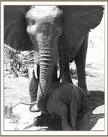The next day the Keepers tracked her, and found her still on her own, still visibly shaken and still extremely distressed. However, they knew that Lissa’s family was in the area and that Mpenzi would gravitate back to them, and this she did, a day later. hoped that Lissa’s third calf Lugard would benefit from the extra milk Mpenzi had to give, and in so doing spare her the agony of engorged breasts. This obviously happened, for some months later the entire group turned up at the Voi Stockades for a visit, and looking relaxed and calm with them was Mpenzi, while Lissa’s three calves.