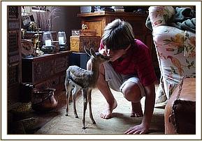 Oomphy our orphaned tree hyrax, who is thriving in his new adopted family and Geri our sprightly Thompson’s Gazelle are inseparable