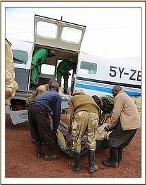 Bocha was reported to the DSWT late in the evening of the 28th of March. With no time left to deploy a rescue team from the Nairobi Nursery that evening, the rescue took place early the following morning and the little calf was flown out of the Lewa airstrip, the closest airstrip to where he was rescued and brought to Nairobi.