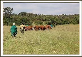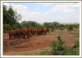 As females, these inseparable sisters will reach sexual maturity between two to three years old and it is not uncommon for the hens to begin laying eggs around that time. Having grown up spending days in the forest with their four legged friends, each evening Pea and Pod happily take themselves back to the safety of their night stable, now situated between Ngilai and giraffe Kiko so weaning them off their elephant family will prove challenging. With this in mind we have been taking Pea and Pod along with their four legged friends on extended walks down onto the savannah plains of Nairobi National Park, where ostriches are naturally found on the acacia scattered grassy plains of beautiful Nairobi National Park. Nairobi is blessed to have such a beautiful National Park literally on its outskirts, and there are a healthy number of wild ostriches in this Park. It is our hope that with regular trips onto the plains, they will feel the call of the wild and eventually opt to spend their nights under the stars – and not in their night stockades.
