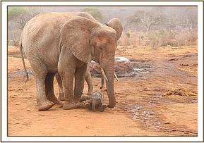 Now a mother for the first time, orphan Galana who is 13 years of age, was rescued as a little baby having been spotted alone and abandoned near the Galana River on the eastern boundary of Tsavo East National Park