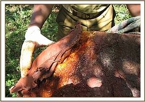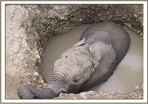 Sinya, a well victim from Amboseli, came with a horrendous wound on her back as a result of her struggle to escape the well before being rescued. This wound took literally months to heal, but through her painful journey we discovered the healing powers of green clay which we have subsequently used to treat hundreds of wild elephants through our veterinary units and injured orphans that have come into our care since.