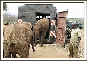 Three large Safari Trucks had been parked at the Nairobi Nursery Loading Bays for five days prior to the 16th June, 2008, the day set aside for that important journey, so that the three orphans could become accustomed to entering the vehicles. Lenana and Chyulu were compliant, but Makena thought otherwise, perhaps because she associated the presence of trucks at the Loading Bay with the sudden absence of so many of her older Nursery loved ones – Naserian, Lualeni, and Sian to name three who had been Mini Nursery Matriarchs all of whom had taken Makena into their large elephant hearts when she was just a baby.