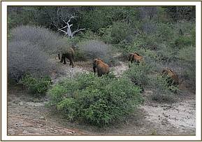 Thirty young elephants were extremely happy that day, as they escorted Lenana, Chyulu and Makena out for their first foragy into the bush to browse. That excitement was obviously detected by others further afield, for as the orphans were heading back to their Night Stockades, 4 very large wild bulls turned up to monitor what was going on. The orphaned herd walked right past them and so, within hours of touching base at Ithumba, Lenana, Chyulu and Makena were treated to what for the others was a rare sight for a very long time – members of the wild community.