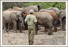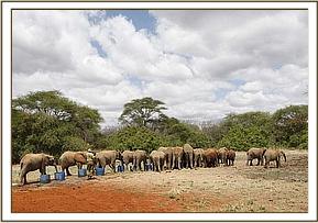 Now, the wild elephants have moved in en masse. Their footprints and dung litter all the roads, and they even turn up to drink at the Ithumba Camp, utilize the stockade trough and Orphans’ mudbath, and regularly meet with the older orphans when they separate from the Keepers and the youngsters to travel further afield and fraternize with wild peers. The presence of the orphans, and the confidence they have been able to impart to their wild peers who have long viewed humans as anathema to be avoided at all costs, is nothing short of miraculous. Aside from putting Kenya on the map as a prime tourist destination through the international publicity they have generated through the BBC series “Elephant Diaries” (voted the most popular series of the year) and the prestigious CBS 60 Minutes Program, our elephant orphans have brought the wild herds back to an area that all the elephants abandoned en masse for three decades due to the poaching holocaust of the late 70’s, 80’s and early 90’s. Hence, another 3,000 square miles of pristine wilderness is, once again, elephant country that will benefit from their presence, becoming again what it was in the early days, the jewel in the Crown of Tsavo, and home to some of the greatest Tuskers Africa has ever known.