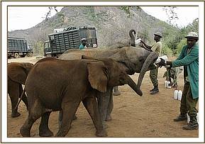 The trucks that carry the young orphans on the six hour journey were backed against the loading ramp days before in order for the Nursery Keepers to practice loading with the tempting milk bottle brandished in front of them. It seemed to be working well, Orok and Sidai sharing a lorry as the two of them are inseparable, and Challa in a truck all of his own.