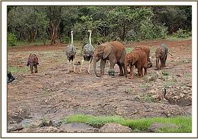 Pea and Pod have grown up with our orphaned elephant herd ever since, and are now an intrinsic part of our Nursery Unit. They provide endless hours of entertainment for the elephants who love to charge them, hug them, and positively maul them, although taller than their elephant peers in this short time these long suffering feathered friends remain very protective of the herd! It is a most unlikely combination which has formed an enchanting inseparable friendship.