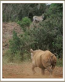 Shida features prominently in this month’s Keepers Diary, for he has taken to frequently and escaping from, and deliberately evading, his Keepers, having obviously decided that he is now sufficiently confident on his own to qualify as a“wild” and solitary rhino, having been walked around the dungpiles and urinals of the wild rhino inhabitants of the area for the past three years