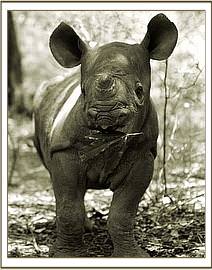 Shida features prominently in this month’s Keepers Diary, for he has taken to frequently and escaping from, and deliberately evading, his Keepers, having obviously decided that he is now sufficiently confident on his own to qualify as a“wild” and solitary rhino, having been walked around the dungpiles and urinals of the wild rhino inhabitants of the area for the past three years. He has befriended a family of warthogs who are always in the vicinity of the Stockades to enjoy any left-overs from the Staff Canteen and who also usually join him out in the bush to benefit from the protection of him and his Keepers. Shida enjoys playing with them, challenging them to a butting bout, where he is always the victor, and even lying down to allow them to clamber all over him pulling ticks off his body. (Rhinos are very sensuous animals, and any rubbing or scratching of their body prompts them to collapse in a blissful stupor! He often also enjoys chasing the giraffe around, or, in fact, any other animal that will run from him, but wary of the resident buffalo bulls! On many occasions this month he has been absent all day, turning up unattended at the mudbath at unexpected times, and bringing himself back to his Night Stockade long after dark. When he returned at 10 p.m. on the night of the 31st, he was accompanied by another adult wild rhino friend, who lacked the confidence to actually enter the Stockade with him, but was seen by the Keepers who were with Kora and Lualeni in their Night Stockade. It is very gratifying to know that Shida has an adult wild rhino friend, and that his reintegration back into the wild community has been successfully accomplished. This is always a challenge when hand-rearing the orphaned rhinos.