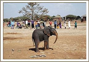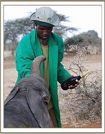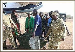 Another Sunday, the 15th March 2009, and yet another Elephant Rescue alert, this time again from the area around the Kirisia Hills near Maralal in Northern Kenya. The casualty this time was a 5 month old bull calf who became hopelessly bogged in the mud of a drying waterhole of an area known as Baawa during the night of 14 /15th March, and was found in the morning by Samburu cattle herders. They, in turn alerted the Chief, who was reluctant to save the calf at first because of a recent incident, a week before, where a man was killed by an elephant. He was persuaded by KWS Rangers that the calf must not simply be left to die, but should be rescued. These particular KWS Rangers, and indeed the KWS Warden of the Area, are familiar with the Trust's Orphans' Programme, and they not only orchestrated the rescue of the calf, but drove him to Mugie airfield to link up with the Rescue Plane sent from Nairobi.