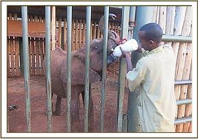 Given her age Angela decided that it was in her best interests to be transported back the Voi stockades to be raised down with the older orphans in Voi, avoiding the Nursery altogether. We estimated the calf to be 2 ½ years old. She remained in the stockades for a good long time because with Emily and the ex orphans group visiting so frequently recently we knew she was vulnerable at being whisked away by them and what she need most was sustenance and milk. She immediately took to her bottle and soon tamed down fast. Her strength has increased over this time and the presence of the older orphans comforted her as she embraced the company and love of a welcoming group of older and nurturing elephants. Her lonely month without her lost mother must have been extremely frightening for her. Elephants are such social creatures and time alone and abandoned is the worst possible fate for a young baby. Her relief at being rescued was tangible. We are thrilled to be able to offer Ndoria a new beginning and she is now out with the others enjoying her days fun filled in the bush all day with a whole new family of elephants to once again feel a sense of belonging. She has grown to love her Keepers in the weeks since she was rescued and is a very loving and special little elephant who so tragically lost her mother to the ivory trade.