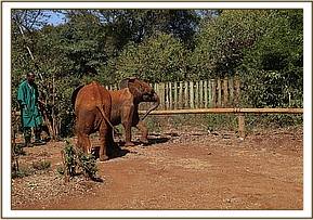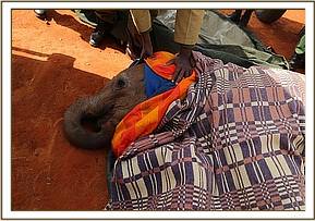 The Kenya Wildlife Service Senior warden of Tsavo East was informed and he called the Trust’s Voi elephant Keepers to mobilise a rescue after which the calf was duly captured with little residence due to its emaciated condition. He was a young male and was driven to the airstrip to wait for the aircraft from Nairobi which had in the meantime been arranged; this ensured the rescue was seamless with little delay. The rescued baby was prepared for the flight, hydrated throughout the journey and placed in a stockade at our Nairobi Nursery.
