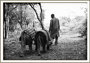 Little Sasab suffered a triple “whammy” having been with us just one month. He began teething and had the usual loose stools, contracted pneumonia, (for which we administered a strong injectible antibiotic in an attempt to save him); but the loose stools masked the onset of gastro enteritis that destroyed the lining of his gut. When he began passing blood in his stools, we resorted to oral Sulphadimidine but it was too late. Tragically, we lost him on the 8th December, when most of his teeth were actually through the gum. His death was a depressing and very sad event albeit one we have had to endure all too often in the past, but to which one never becomes immune. Tears were aplenty, as were the saddest words of the English language – “If Only” - words we have used umpteen times in the past, but it never gets any easier. He will be sorely missed by his elephant Nursery peers, his many foster-parents, and most of all by us and his loving Keepers who struggled so hard to save him.