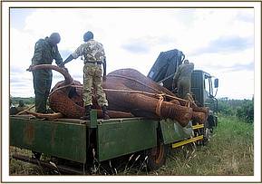 In October 2005, attempts were made to drive the elephants out with a helicopter through selected areas of the fence, which had been brought down and camouflaged with bushes. The elephants stubbornly refused to go out and The Kenyan Wildlife Service decided to initiate other options. One of these options was to immobilise some, transport them and revive them outside the sanctuary close to watering points. To assess the success of this option, a small capture team comprising of two vets, a technician, four rangers and four drivers were sent to Ngulia between the 26th of June and 10th of July to undertake the exercise before a bigger translocation is planned. Thirty-eight animals were immobilised and removed from the sanctuary. This comprised of 35 bulls and a small family of three. There was no mortality.