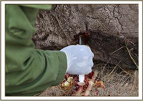 Dr Poghon and the pilot were met at the airstrip by an employee of ATE who took them to where they had found Ulysses. Ulysses remained very calm as the teams approached him and stood in-situ once being darted, understanding help was at hand. He eventually collapsed just over 20 minutes later.