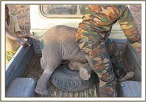 The mother was then revived but sped off confused and frightened leaving her calf behind with the veterinary team. They were forced to physically restrain the baby again, and place him in the back of a pick up vehicle until such time as they got close enough to the herd to reunite him. Thankfully he called out, and his mother immediately responded rushing to his aid and he joined up with her and the rest of his family unit. The suffering caused by this crude poaching technique of snaring, so indiscriminate, is unimaginable. The importance of our anti poaching teams constantly patrolling the protected areas and their boundaries to rid them of snares is graphically illustrated with this case, but thankfully we are hopeful that this baby will make a full recovery.