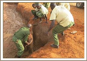 KWS continually monitors these watering points pre-empting these incidents by excavating the sides, but in the dry season, with literally hundreds of elephants converging daily, the risk remains along what is literally hundreds of miles of pipeline.