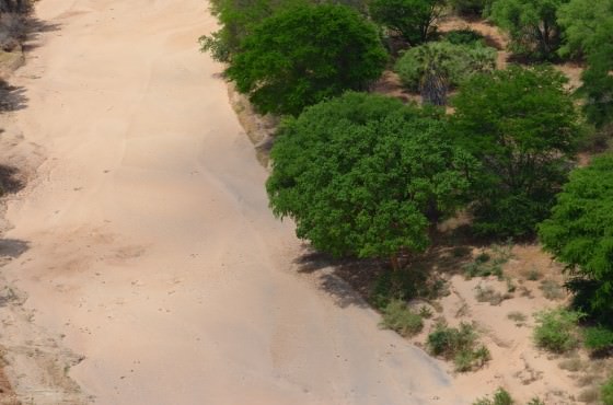 Under the surface, even in the height of the dry season, water continues to seep through miles upon miles of sand as it creeps steadily towards the eastern border of Tsavo East. Occasionally, the water is pushed to the surface by volcanic, rock dams that lie under the riverbed and create springs, which provide life-giving water long after the waterholes have dried up.