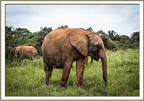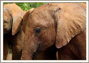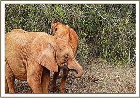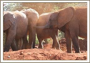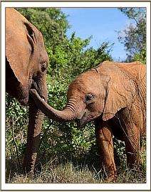 Ambo using his trunk to communicate with a friend