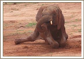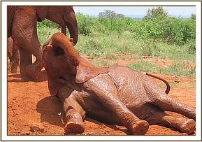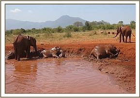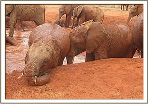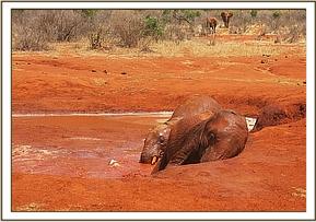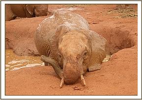 Dabassa relaxing on the side of the mudbath