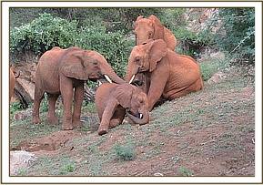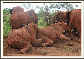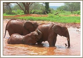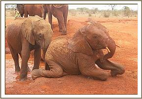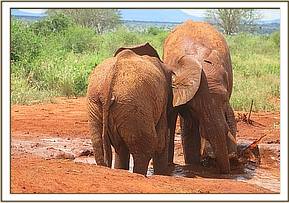 Kivuko and Dabassa playing in the mud