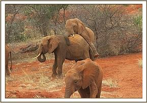 Dabassa watching Kivuko mount a wild elephant