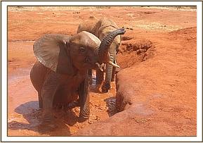 Seraa drinking with Wasessa, Rombo and Dabassa