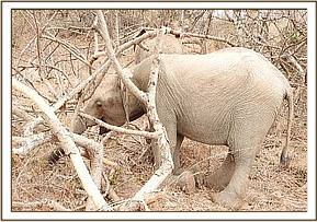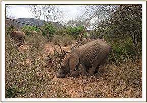 Enkikwe uprooting a shrub