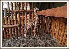 We have called him Kili. Feeding Kili is a very different experience for our Keepers, as despite him being just days old they still need to clamber high up on the stockade partitions in order to get the bottle at the appropriate angle so that it feels natural for him, and a special mobile feeding ladder is having to be made!