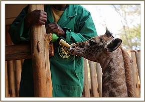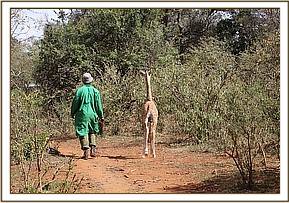Kili has been with us for two months now and has settled beautifully into Nursery life. He adores his stable, and enjoys his days out in the forest with his Keepers. He is already exposed to the wild giraffes of Nairobi National Park, watching them only from a distance at this early stage.