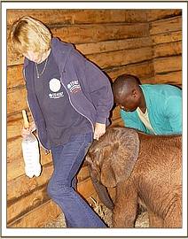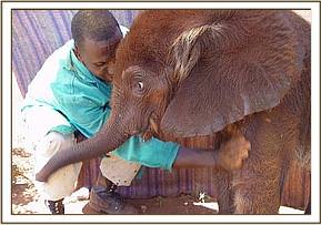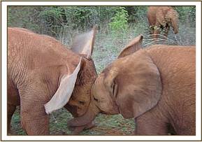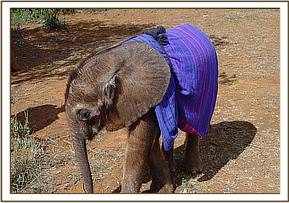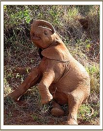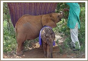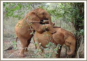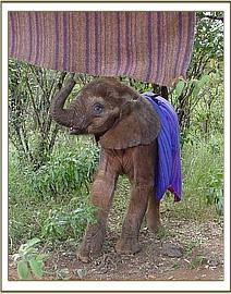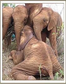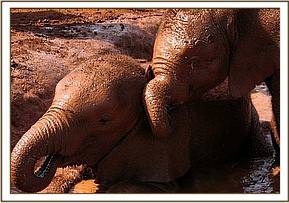 Madiba with Julius having a light dustbath. He arrived as such a fuzzy little elephant