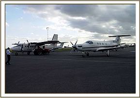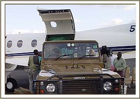 The landrover parks close to the PC 12 aircraft so that Madiba's crate could be manoeuvred off the plane