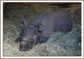 Maxwell lying down in Galdessa's stockade