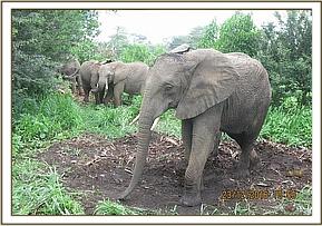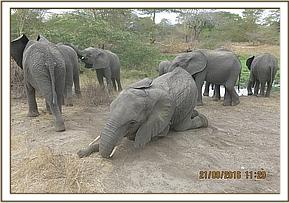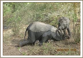 Murera putting her babies under the shade