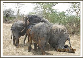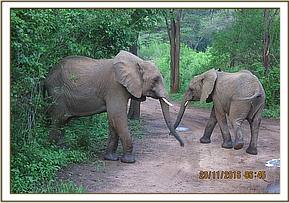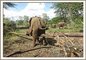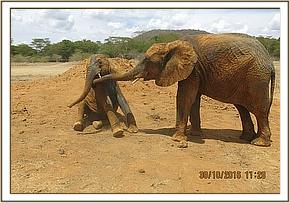 Murera holding Mwashoti's trunk