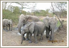 Murera at the water trough with the babies
