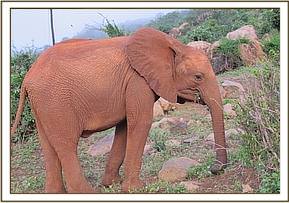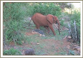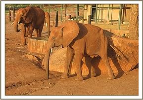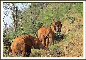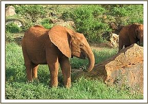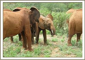 Ndii stretching her trunk to welcome Bada