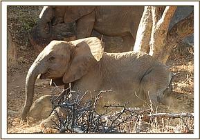 Roi and Esampu enjoying a dust bath on the side of the road.