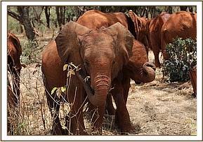 Kiko is proving his very naughty character all the time and he did so again today during the public visit. These days it is very hard to get him to listen to the keepers and just before 11am he walked to the mud bath ground and didn’t want to leave. The keepers tried calling and persuading him with milk and his favourite vegetation to get him to leave before the public came but nothing worked. He remained busy feeding on the acacia trees around the area paying no attention to anybody. From a distance he watched the public as they began to walk down to the mud bath area where the elephants come for their milk. After they had all settled and the first group had finished drinking their milk, some of the orphans were rolling in the mud and the others were dusting in the loose soil. Kiko started trying to move around to the public but three keepers got in his way to block him from getting close to the rope cordon. He stopped and changed direction but made further attempts to get to the crowd, though they were all in vain. Eventually he went back to the acacia trees and carried on browsing.