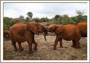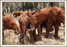 Finally we received some rain last night and this morning the orphan babies had something to smile about! In the early morning sun rays Enkesha, Ndotto, Mbegu and Kuishi all enjoyed rolling around in the small puddles formed in the forest overnight. Enkesha is a great fan of mud bathing and will not pass any puddle without splashing or rolling in it, so this morning she got the opportunity to lead her older peers to wherever there was mud or water. Ndotto was following Enkesha wherever she went, trying to climb on her back, but Mbegu kept an eye on her to protect her from Ndotto’s games. Eventually Mbegu invited Ndotto to a pushing game which distracted him from bothering Enkesha, which went on for some time. This made room for Kuishi to have fun with the little girl and roll around in the mud with her.