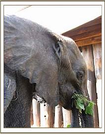 Eventually, he decided to try milk from a bottle held by a Keeper protected by the Gate to his Stockade, and having tasted it, began to long for each feed, gulping it down rapidly, before trying to flatten the Keeper. Gradually, his milk ration, reinforced with oatmeal and coconut gruel was increased and whenever he lay down to sleep, without the strength to remain standing during the nights, the Keepers were able to clean his wounds and cover him with a blanket as protection against the night chill. After a full week, once he responded to the word “No” and refrained from pushing home any onslaught, he was allowed out one afternoon to join the other Nursery inmates, one full week after arrival. Immediately he gravitated to Lenana, the elephant next door to him during the nights, and he and Lenana, who is still something of a loner, still grief-stricken for her lost elephant loved ones, have formed a strong bond of friendship, giving each other comfort and companionship, feeding close together, but keeping slightly apart from all the others.