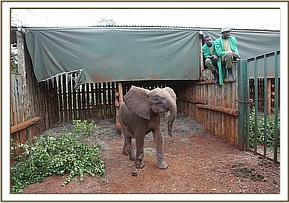 Departing Amboseli at 4pm, the flight went smoothly, two of the Keepers sitting with Jasiri in the back of the plane, keeping the drip in place and keeping the scared orphan company, giving him care and reassurance. After forty-five minutes the aircraft soon dropped low over Nairobi before landing at Wilson airport, where the SWT driver and vehicle were waiting. Jasiri had remained calm and quiet throughout the journey and was now on his way to Nairobi National Park and the SWT Nursery.