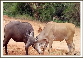 In the evening, Nelion tried to engage Tundani in a wrestling match. Tundani ignored his advances as he was busy browsing, wanting to eat as much vegetation as he could before returning to the stockades for the night.