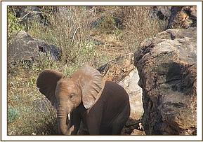 Mudanda being careful on the slippery rock