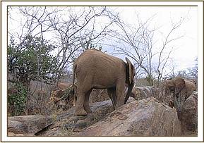 Buchuma scratching on a rock