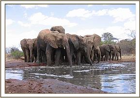 Because it was very hot, the youngsters came early for their milk feed and took a mudbath ahead of the older elephants, who joined them later