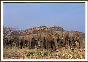 Yatta took her unit eastwards to a rocky hill where the orphans enjoy scratching themselves against the rocks.   Buchuma and Ndomot enjoyed a pushing game, which was interrupted by Tomboi who wanted to join in, so Buchuma and Ndomot opted out.   After mudbath Mulika led the orphans to a valley that has tall trees so that the orphans could shelter from the sun.   In the evening, Challa had the privilege of leading the group back home.