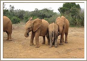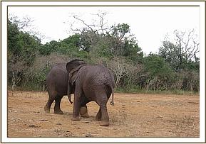Lualeni and Makena were leading the group when they came across a troupe of baboons.   She took Makena back to the other elephants, who were following, and then charged the baboons, scattering them in all directions.    When the other elephants saw the baboons fleeing, they joined in the chase.