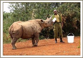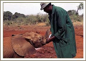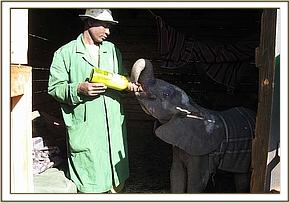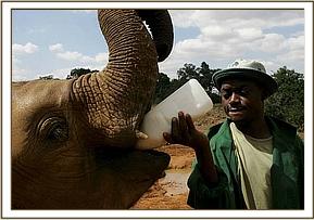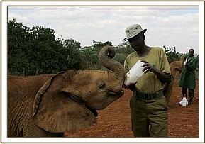 Chyulu is very hungry for her milk these days, following the Keepers, and grabbing their hands to put into her mouth.